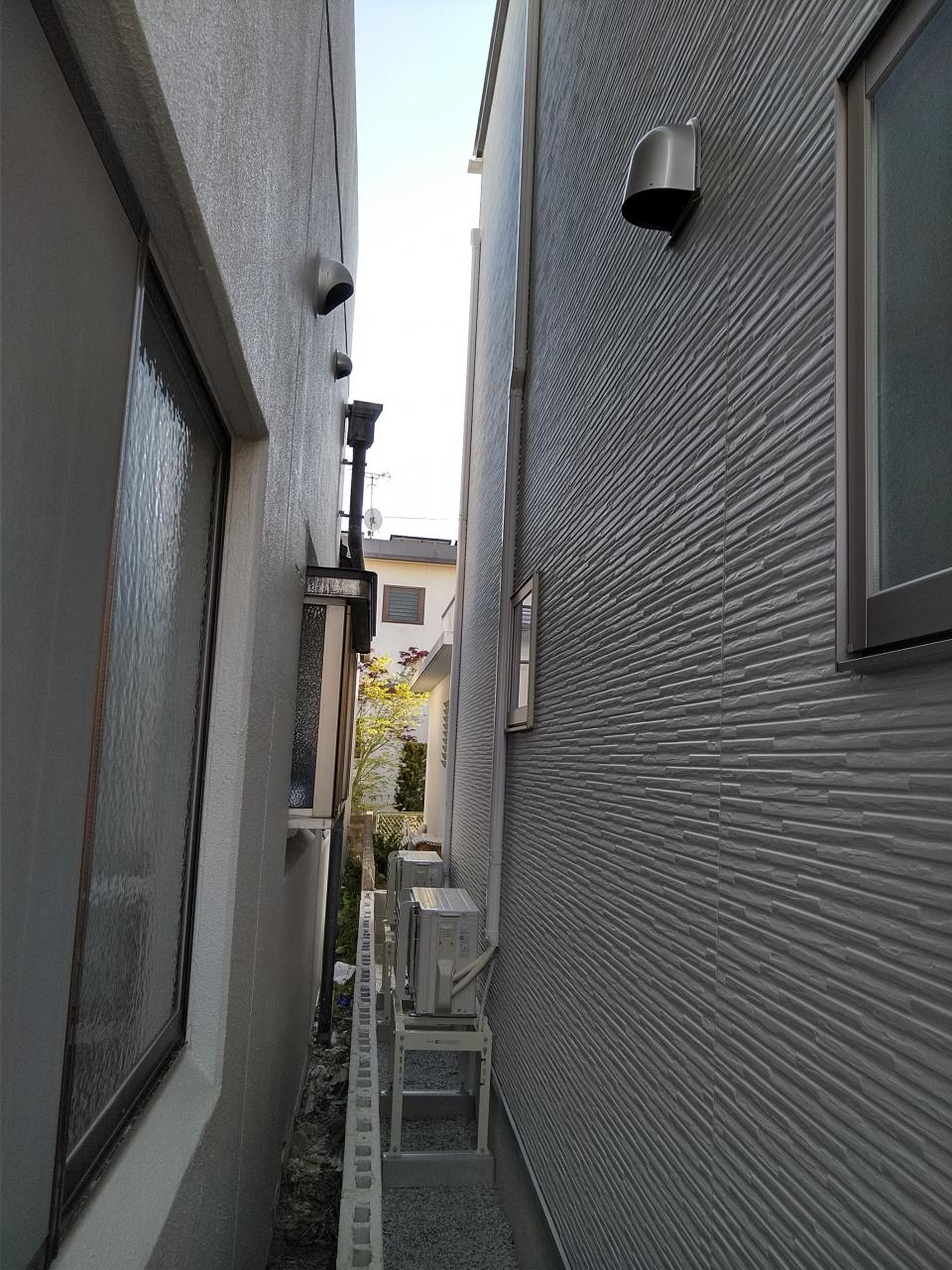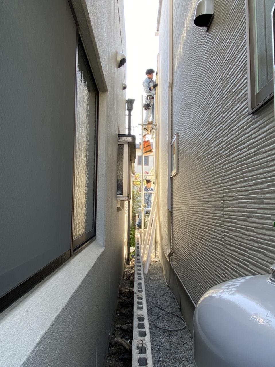 昨日、弊社が普段工事しないルームクーラーの工事を施工しました。建物右側境界まで